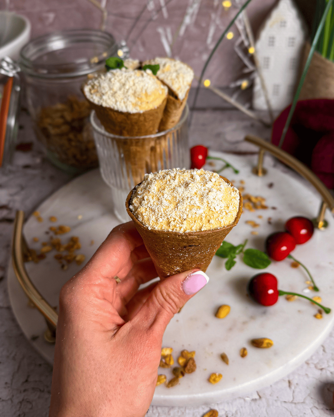 🥧 Chrupiące gniazdka z ciasta filo z kremem malinowym