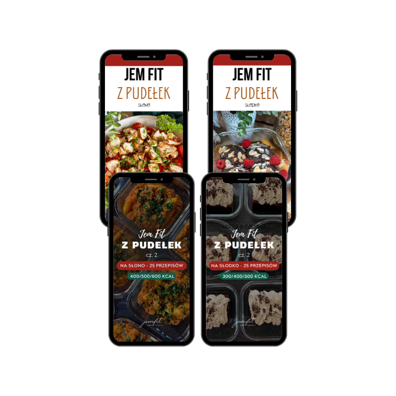 Kupilam pakiety Jem fit na słono i słodko, jak również Jem fit z air fryer. Jestem baaardzo zadowolona. Przepisy są szybkie, proste w wykonaniu a także smaczne. Dołączone filmy z wykonaniem. Obliczona kaloryczność i makro. Żadnych wymyślnych produktów. Łatwiej się nie da. Robie posilki na 2 dni bo w ten sposób oszczędzam więcej czasu. Polecam wszystkim ktorzy chca jeść zdrowo bez zbędnego stania przy garach 😊